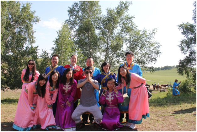 穿上蒙古服饰的小伙伴们穿越了,无论穿越到什么时代,我们都是一家人